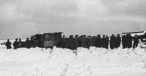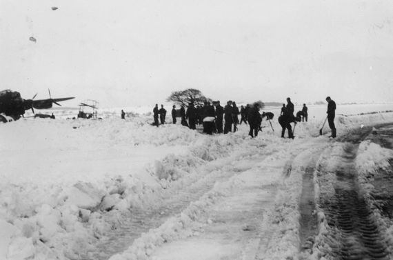 March 1944 – the backbreaking job of shovelling snow to clear the runway so that we could fly.